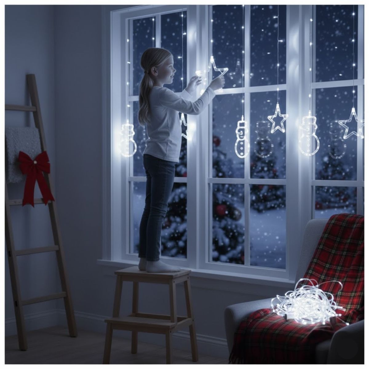 ¡Brilla como el Cielo Estrellado! Guirnalda Cascada Estrella-Muñeco Fría 3M, magia Iluminada. Da la bienvenida a la temporada festiva con nuestra Guirnalda. Transforma tu hogar en un cielo brillante y festivo, donde cada figura es un recordatorio de la maravillosa Navidad.