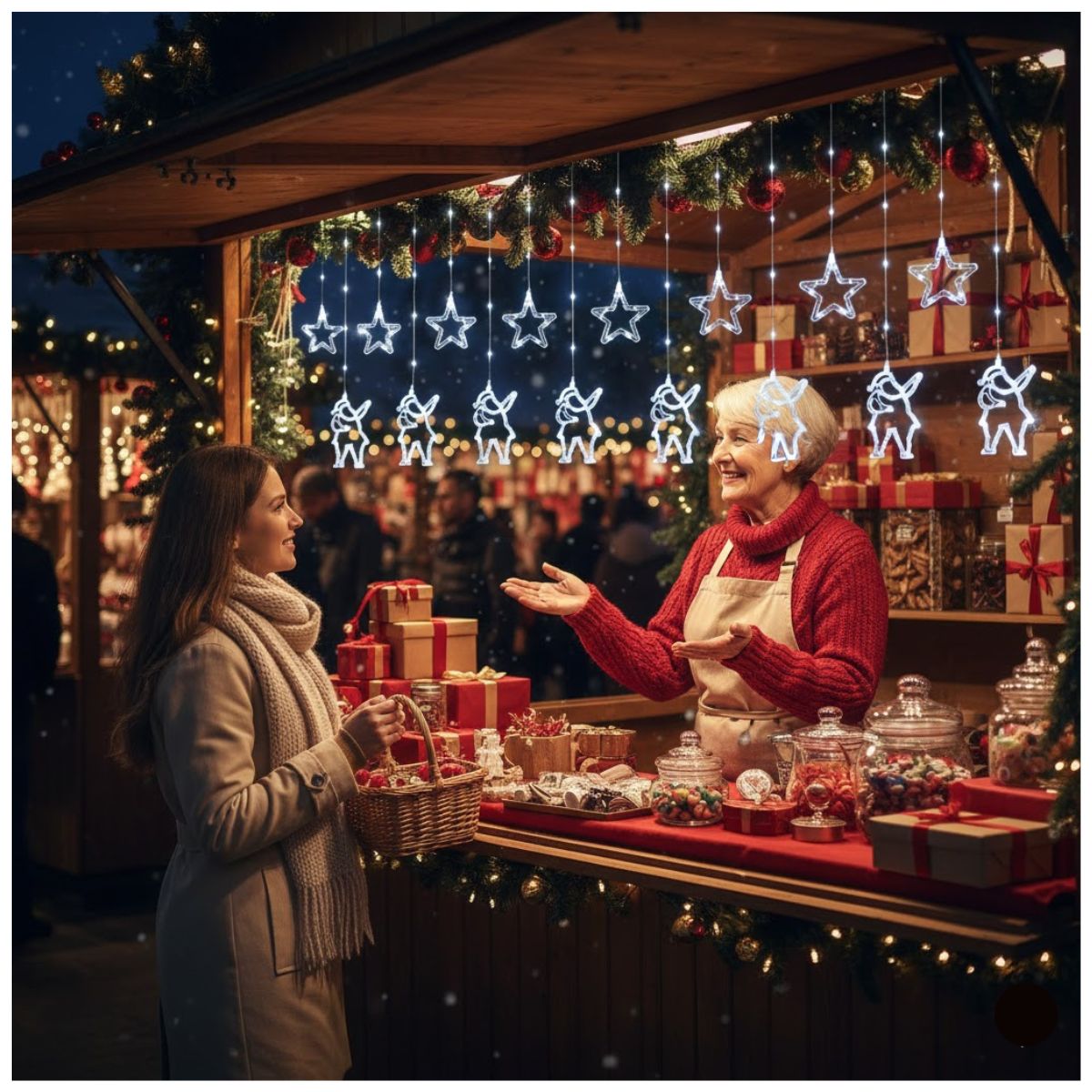 ¡Brilla como el Cielo Estrellado! Guirnalda Cascada Estrella-Santa Fría 3M, magia Iluminada. Da la bienvenida a la temporada festiva con nuestra Guirnalda. Transforma tu hogar en un cielo brillante y festivo, donde cada figura es un recordatorio de la maravillosa Navidad.