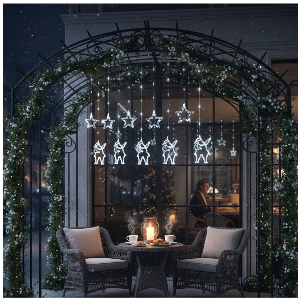 - Iluminación Suave: Las luces LED proporcionan una iluminación fría, creando una atmósfera acogedora y festiva en tu hogar.