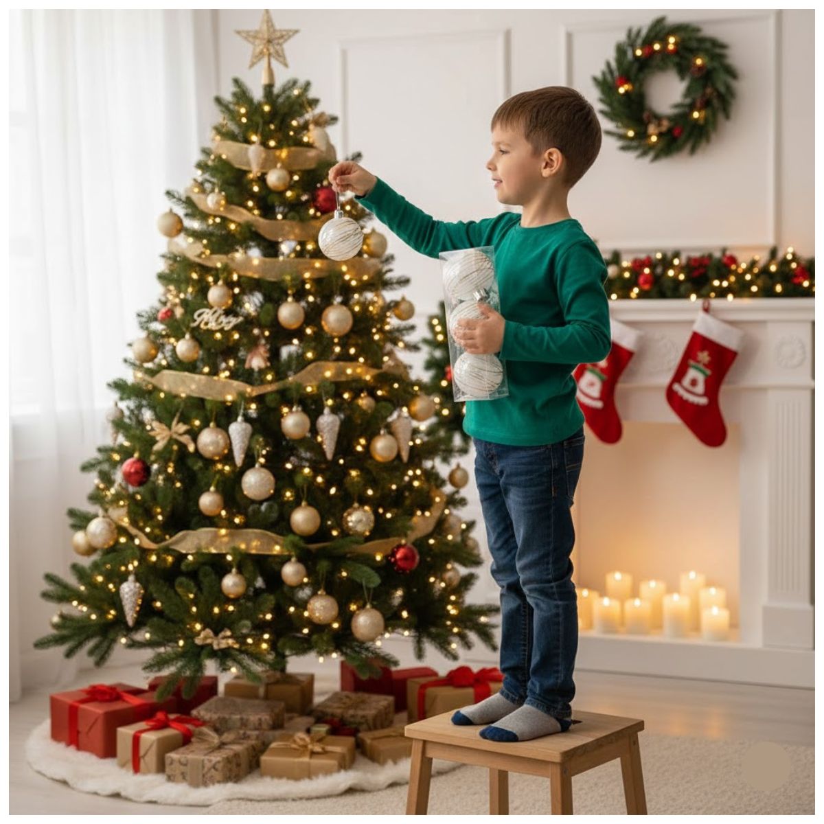 - Tamaño Ideal: Cada esfera tiene un diámetro perfecto, un tamaño estándar que destaca en cualquier árbol.