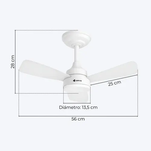 Cantidad de aspas: 3 Diámetro: 13.5 cm Frecuencia: 50Hz Material de las aspas: Plástico