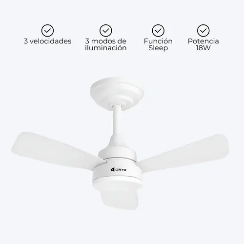 Cuenta con tres velocidades ajustables, permitiéndote personalizar la intensidad del aire según tus necesidades. Su control remoto facilita el manejo desde cualquier rincón de la habitación, brindando comodidad y practicidad en su uso diario. Además, incorpora una luz LED que ilumina suavemente el ambiente.